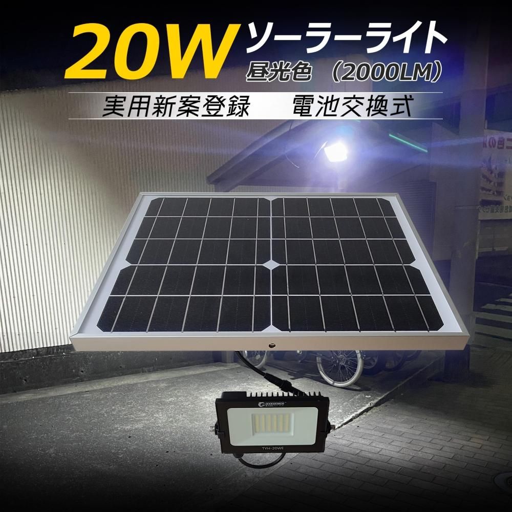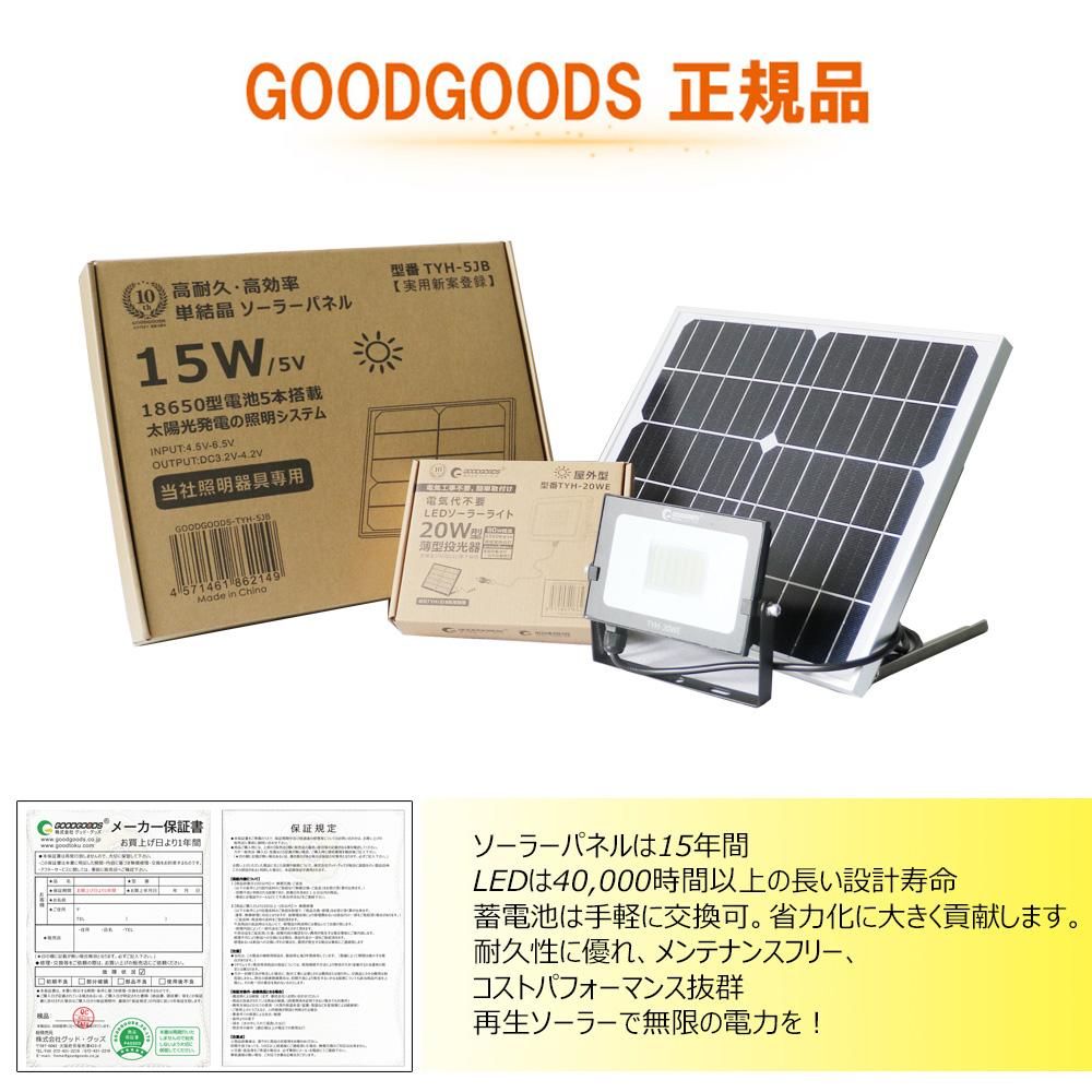 グッド・グッズ(GOODGOODS) LED ソーラーライト 20W 電池交換式 ガーデンライト ソーラー充電  防災グッズ 自動点灯 TYH-20WE