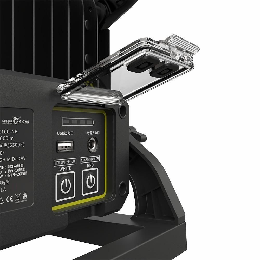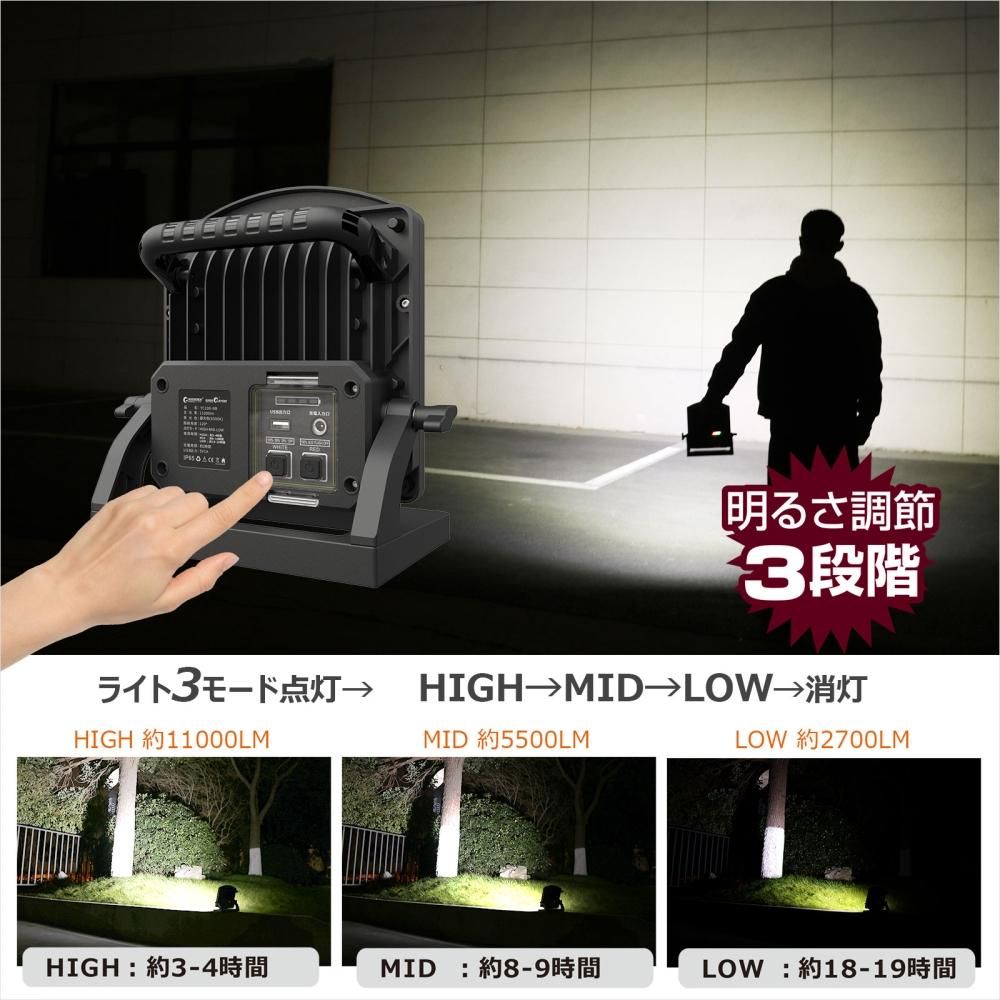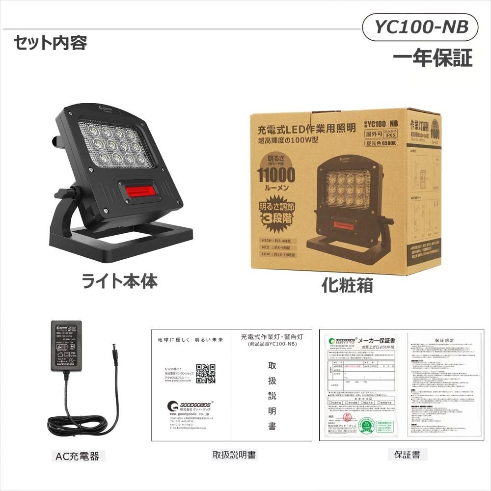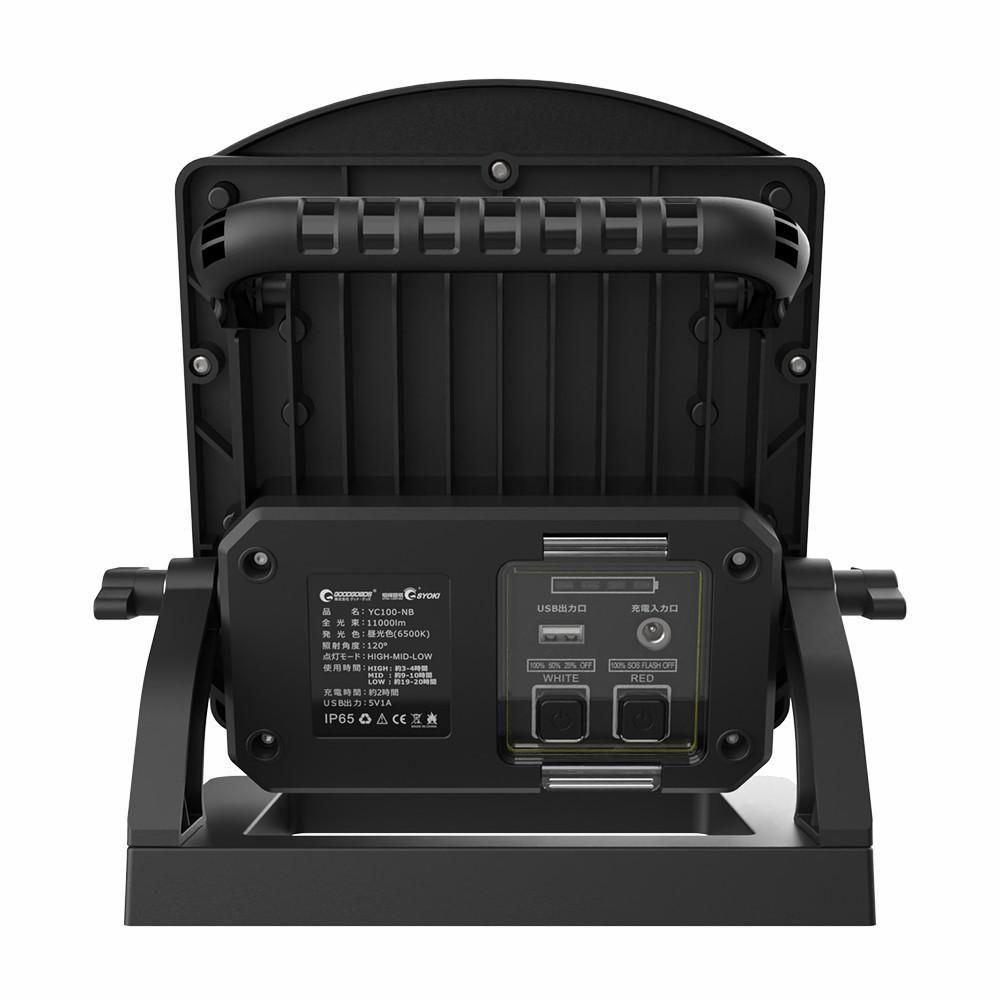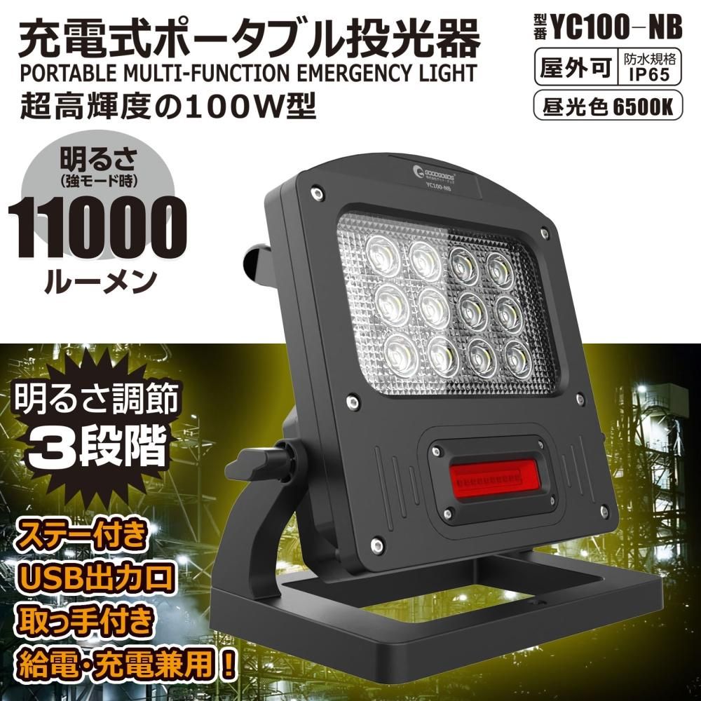 グッドグッズ(GOODGOODS) YC100-NB 充電式LED 100W 11000LM 充電/給電兼用 パススルー 赤警告灯付き IP65 防水 インスタントオフ機能 USB出力 グッドグッズ