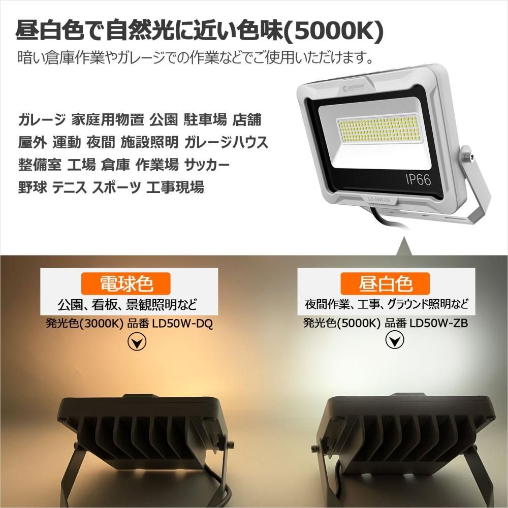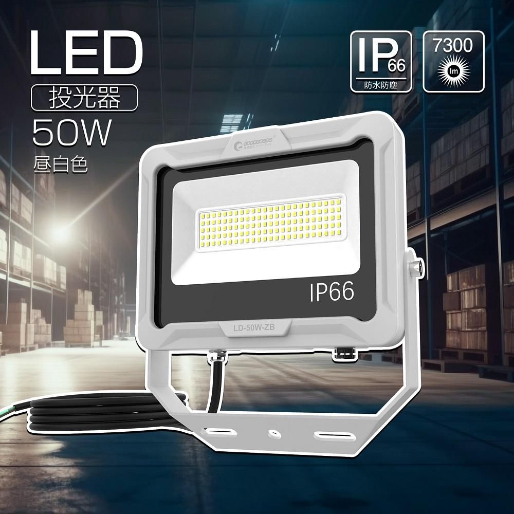 グッドグッズ(GOODGOODS) LD50W LED投光器 50W 昼白色 高演色 小型 軽量 オリジナルステー IP66 屋外 駐車場 グラウンド
