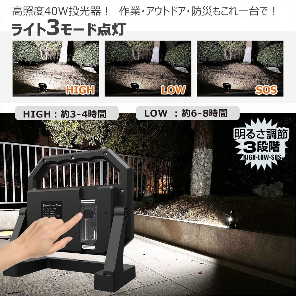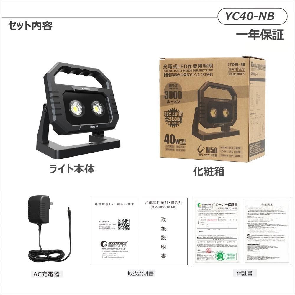 グッドグッズ(GOODGOODS) YC40-NB 充電式LED 40W 3000LM マグネット 昼白色 高演色 倉庫 工場 防水 IP65 屋外 アウトドア 釣り