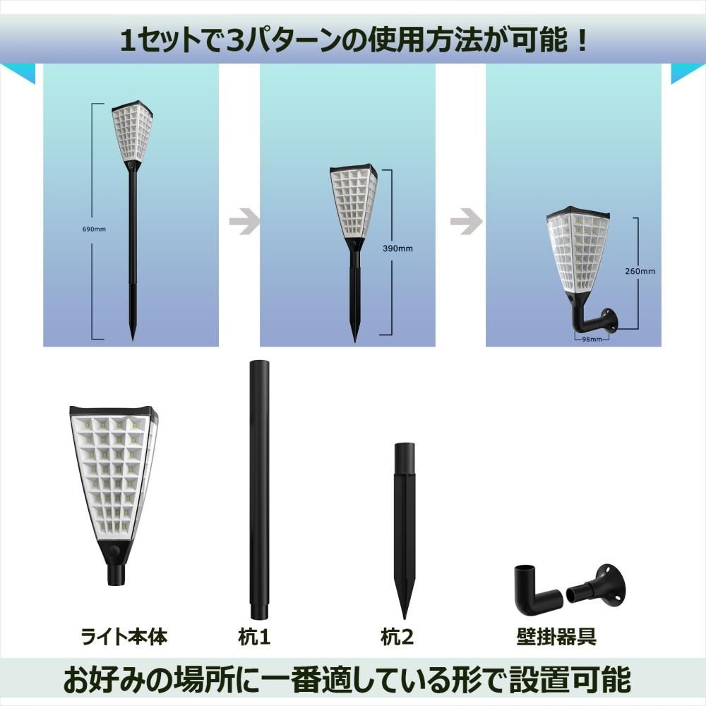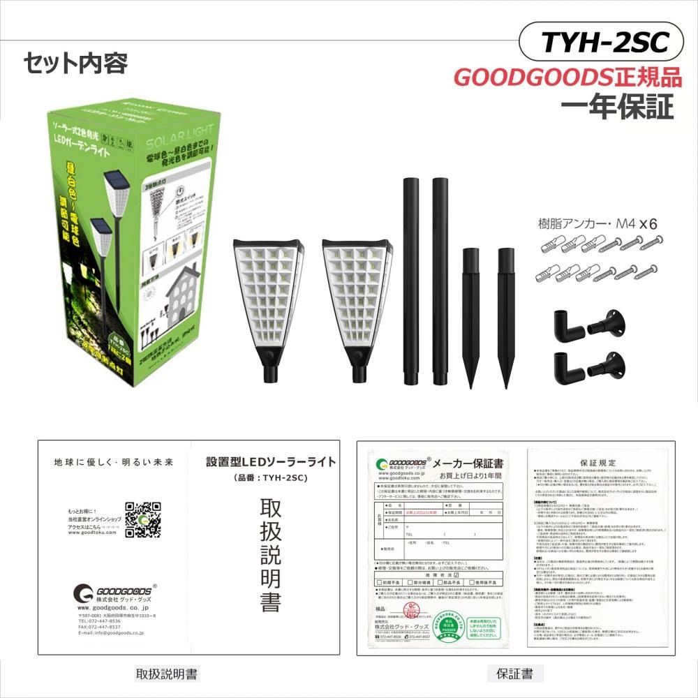 グッドグッズ(GOODGOODS) 2個セット ソーラー 充電式 LEDライト フェードライト 昼白色 電球色 切替 ガーデンライト 通路 杭 芝生 小道 ガーデンギフト TYH-2SC