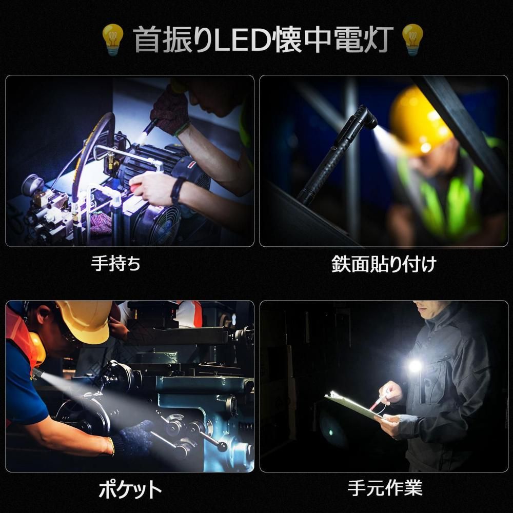 グッドグッズ(GOODGOODS) HL-350F 首振りLED懐中電灯 充電式 350LM 耐衝撃性 IP65防水 クリップ付 ハンディライト 軽量 スリム