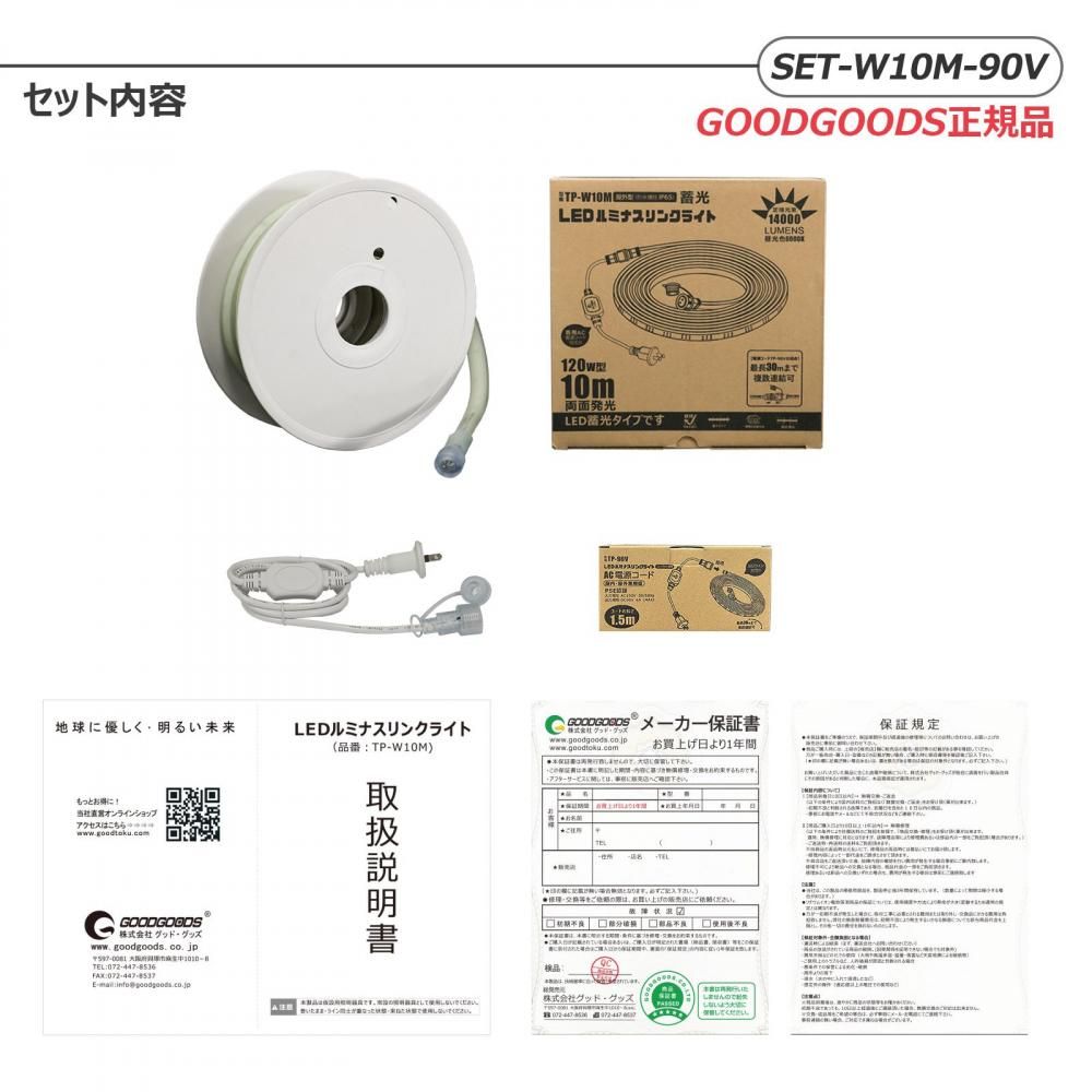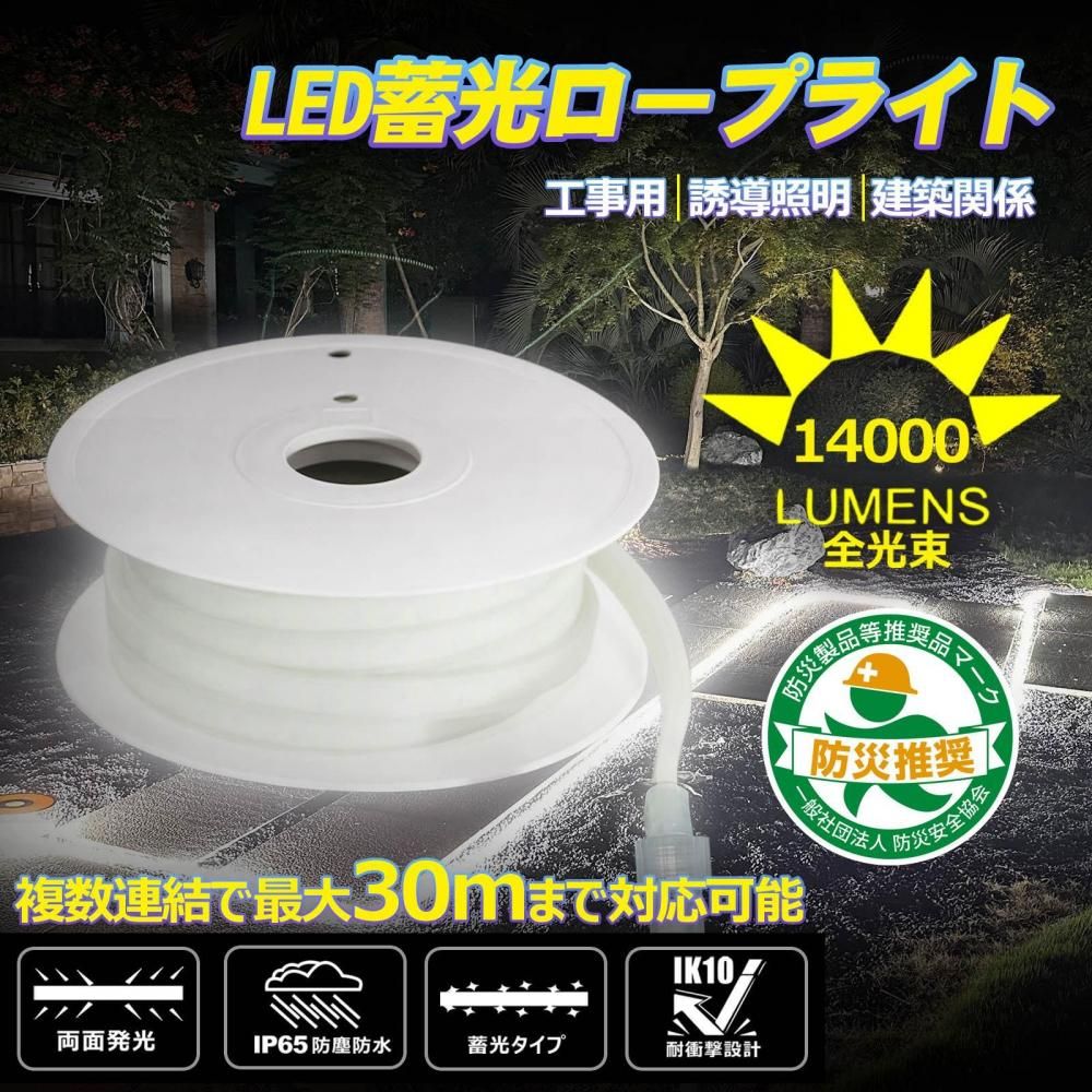 グッドグッズ(GOODGOODS) 10M LEDテープライト 両面発光 蓄光仕様 120W 約14000LM 複数連結可能 誘導ライト ロープライト(TP-W10M+TP-90V)