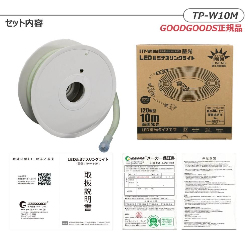 グッドグッズ(GOODGOODS) TP-W10M LEDロープライト ※電源コード別売り※ 10m 両面発光 120W 約14000LM 複数連結可能 最大50m