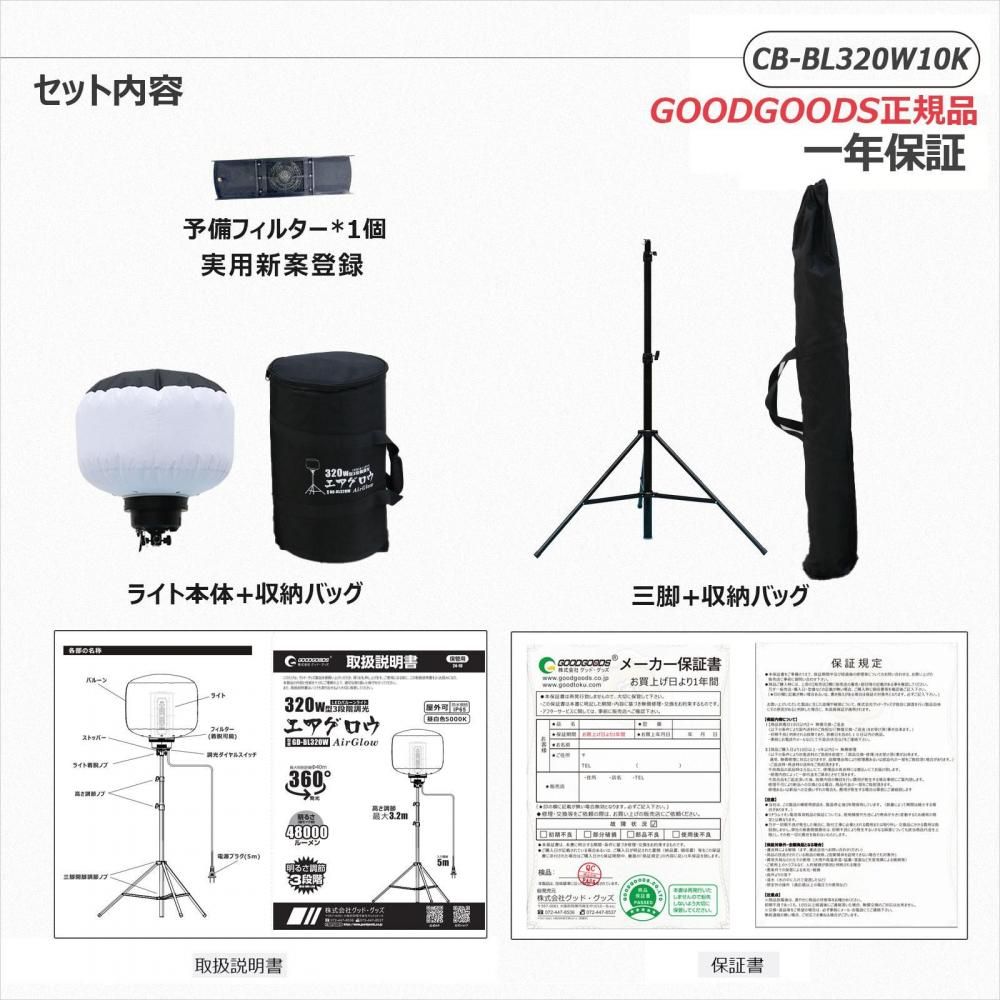 【期間限定価格】 グッドグッズ(GOODGOODS) CB-BL320W10K LEDバルーンライト 360°配光 高さ調節自由 防眩 IP65 調光 防蚊