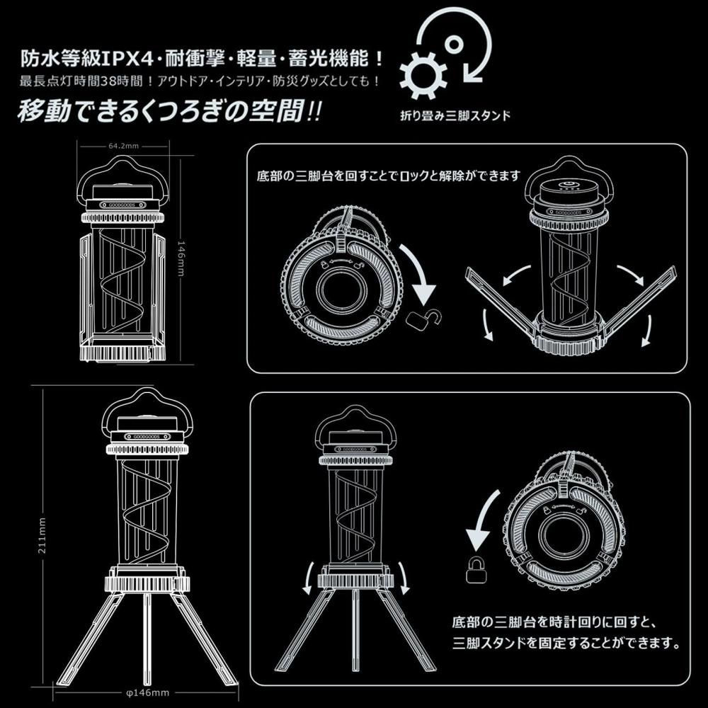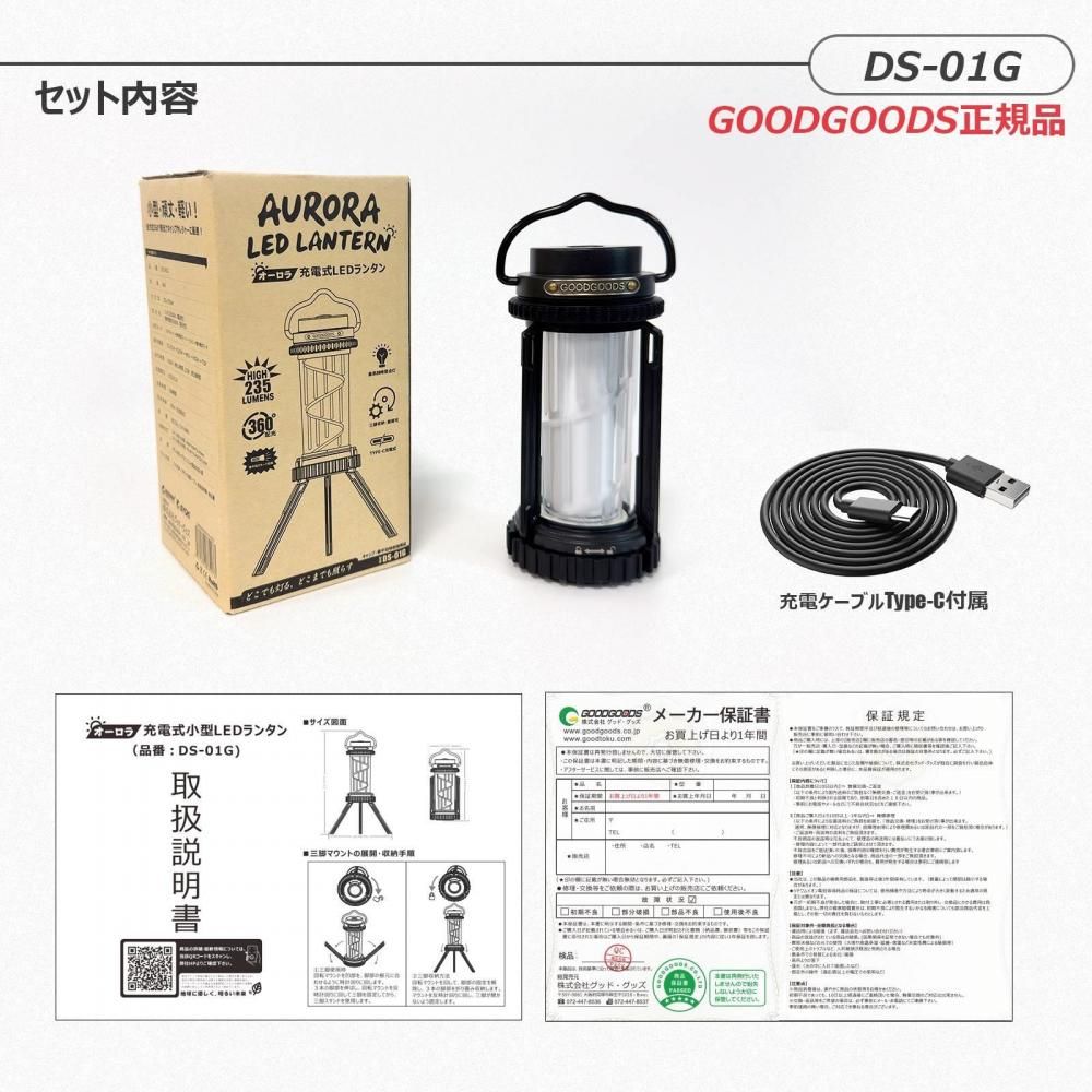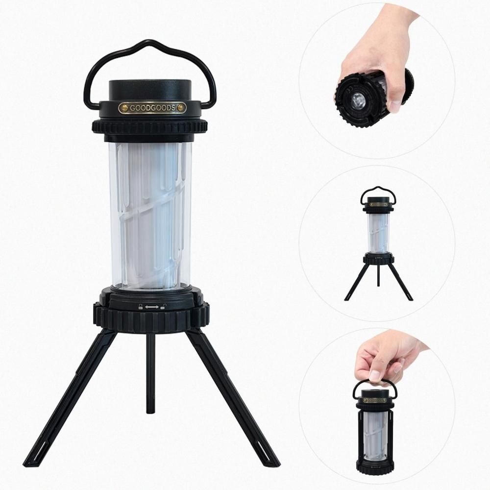 DS-01G 充電式 LEDランタン 三脚スタンド 懐中電灯 兼用 小型 防災グッズ 停電対策 常夜灯 無段階調光 USB充電 ランプ インテリア GOODGOODS
