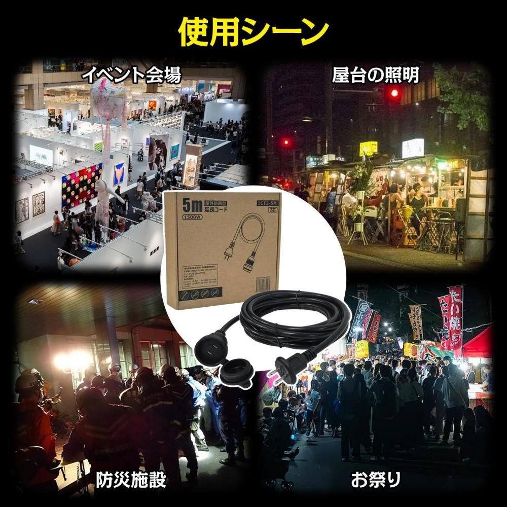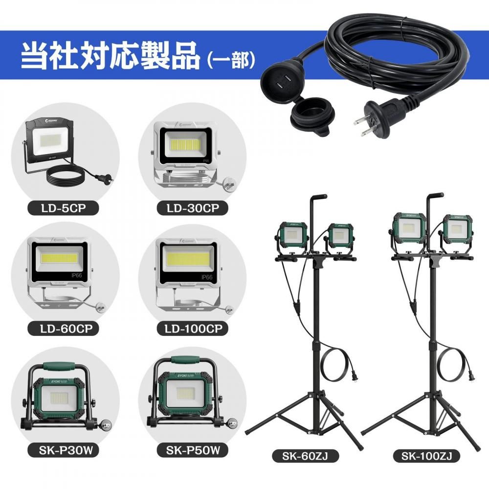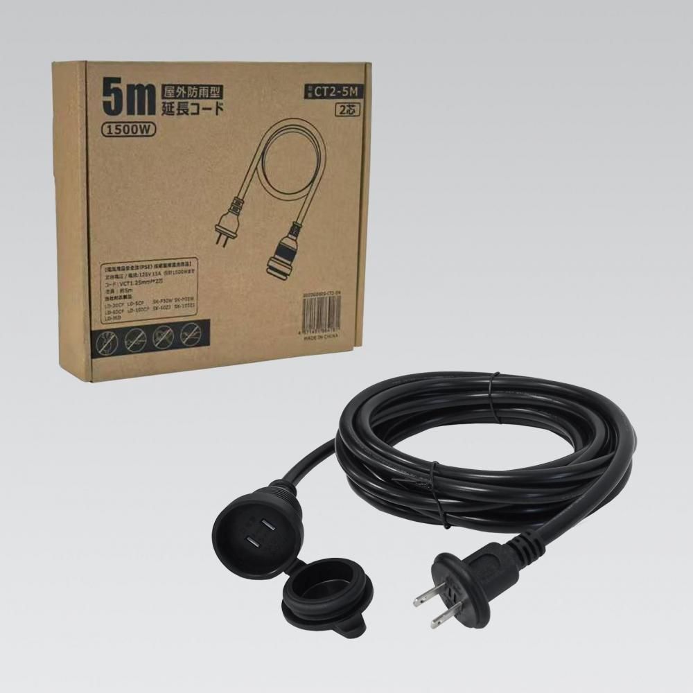 グッドグッズ(GOODGOODS) 投光器用 5M延長コ-ド 2芯 防雨型 キャップ付 屋内外兼用 CT2-5M