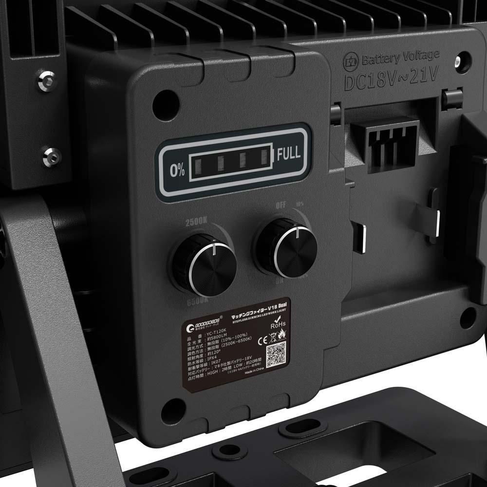 グッドグッズ(GOODGOODS) バッテリー着脱式LED投光器 120W マッチングファイターV18 pro ※バッテリー付属なし YC-T120K
