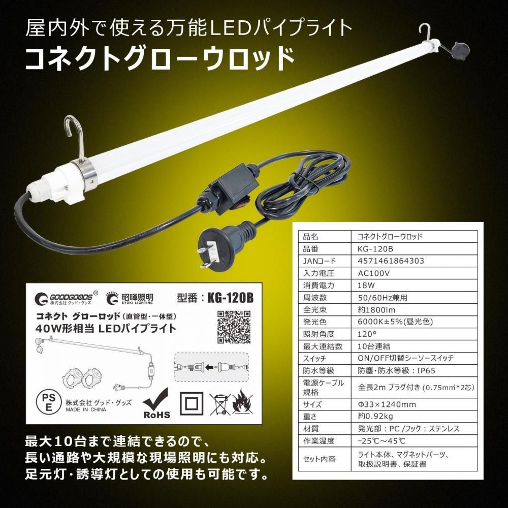 グッドグッズ(GOODGOODS) 4本SET ロッドライト 18W LED直管ライト コネクトグローロッド LEDパイプライト LEDバーライト 120cm 直管型 作業灯 CB-4120B