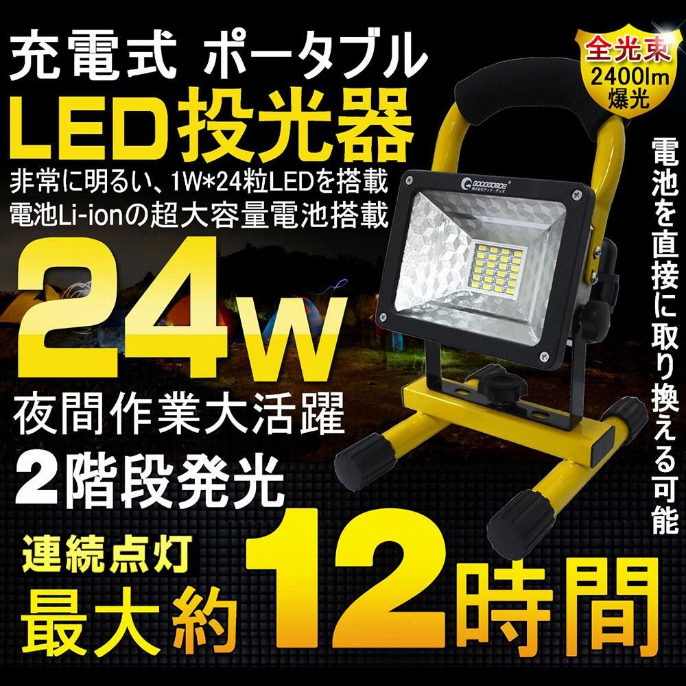 グッドグッズ(GOODGOODS) LED 作業灯 24W 2400LM 電池交換式 充電式 ポータブル投光器 作業灯 18650充電池 夜釣り 集魚灯 屋外 停電 GH12-2