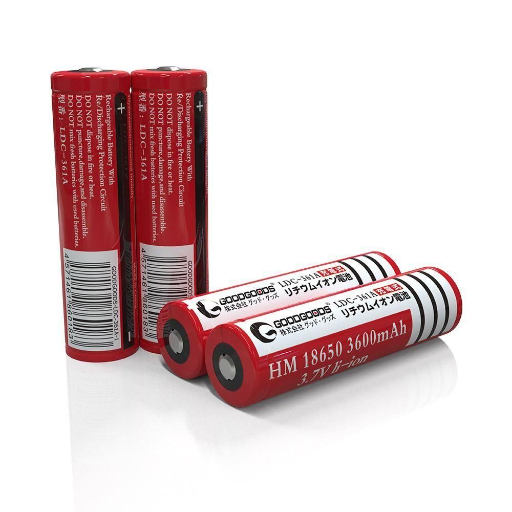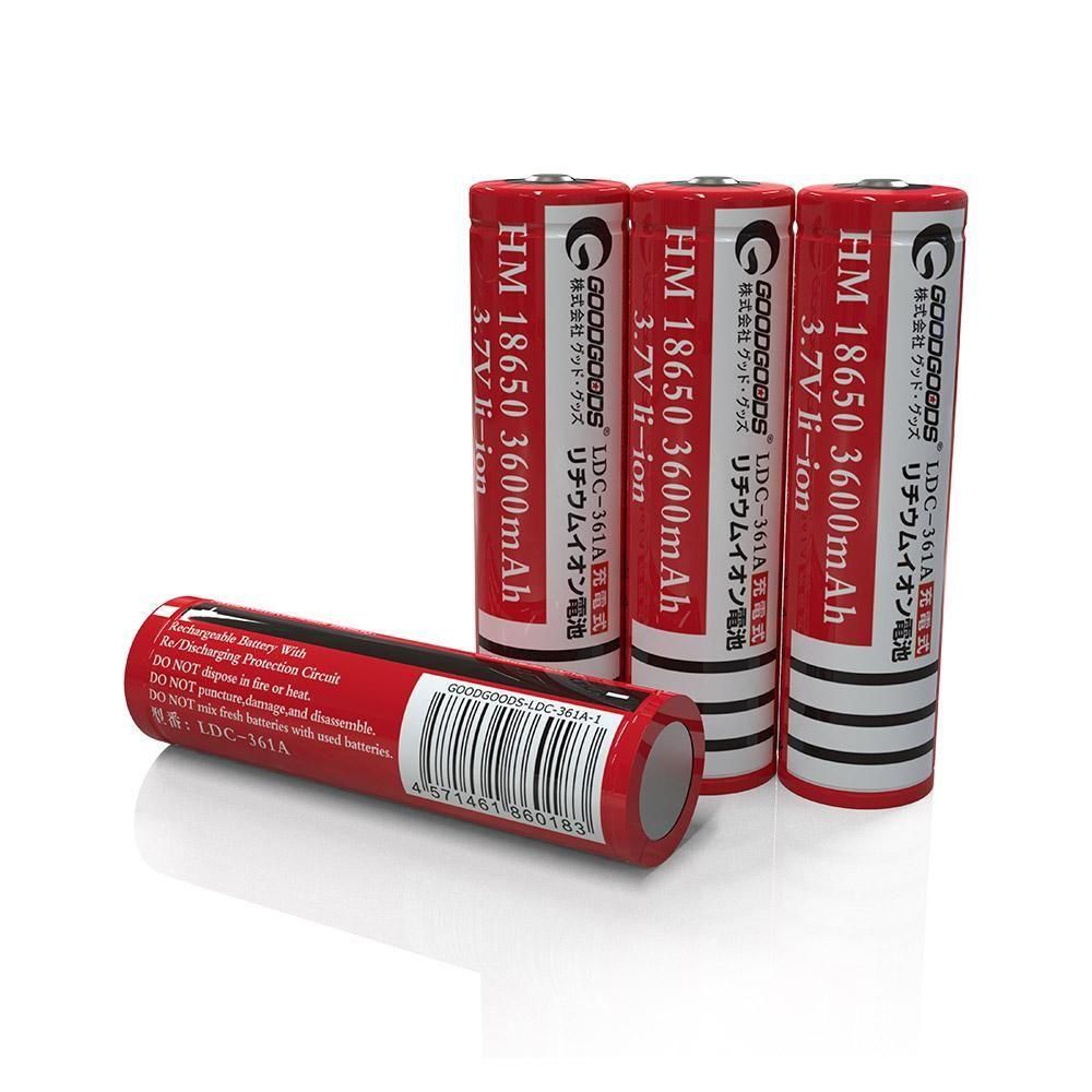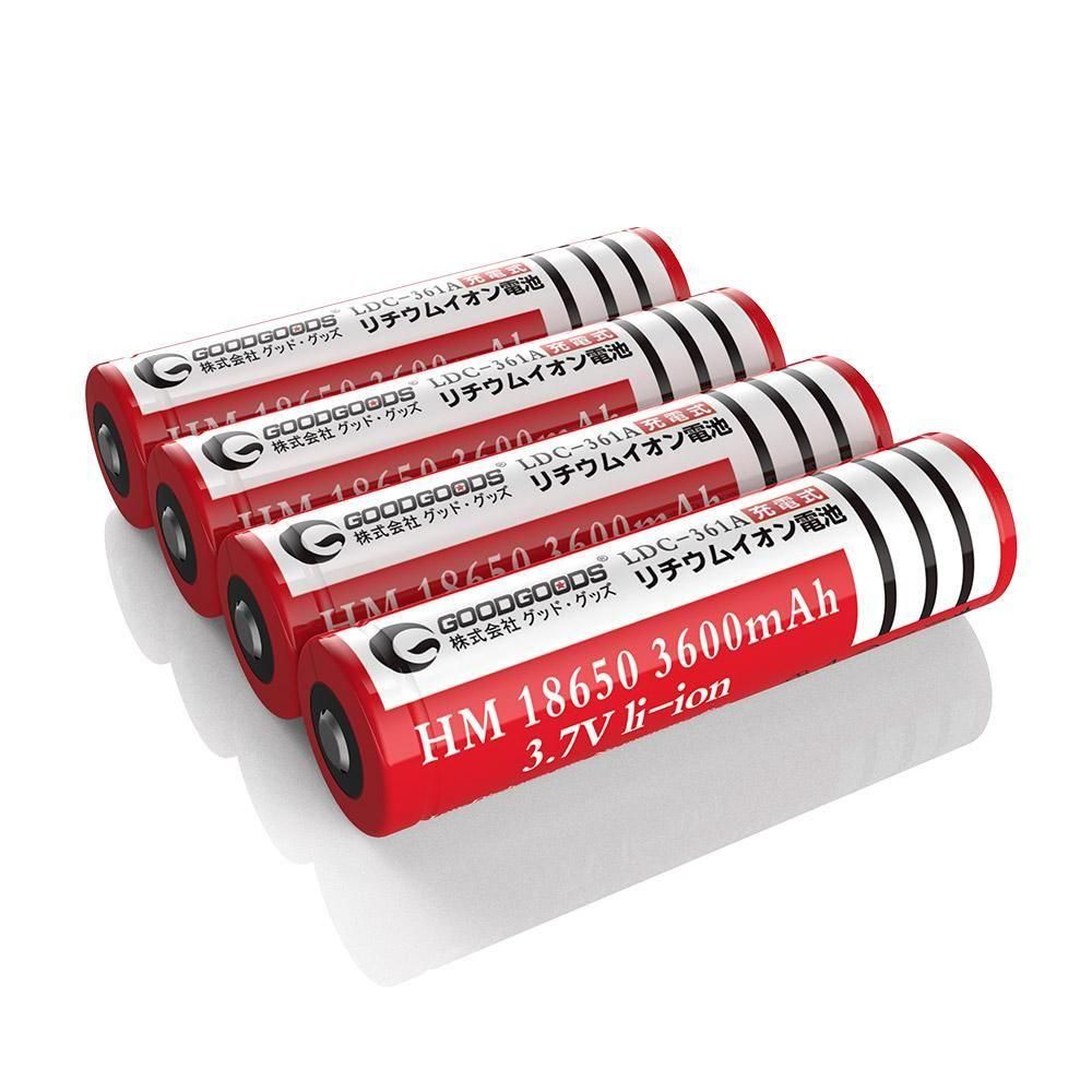 グッドグッズ(GOODGOODS) 4本セット リチウムイオン充電池 18650充電池 過充電保護回路付き CE&PSE認証 3600mAh 3.7V 専用電池ケース付き LDC-364A